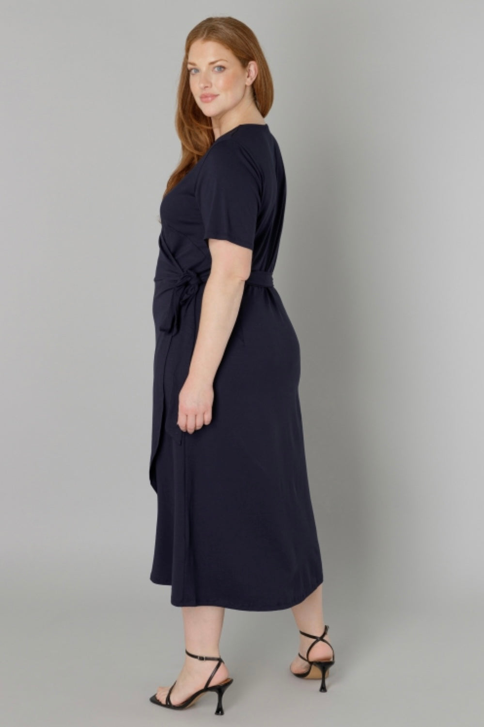 Abbie is gemaakt van een hoogwaardige viscose blend en verkrijgbaar in de tijdloze kleur dark blue . Abbie is een overslag jurk met een regular fit pasvorm.