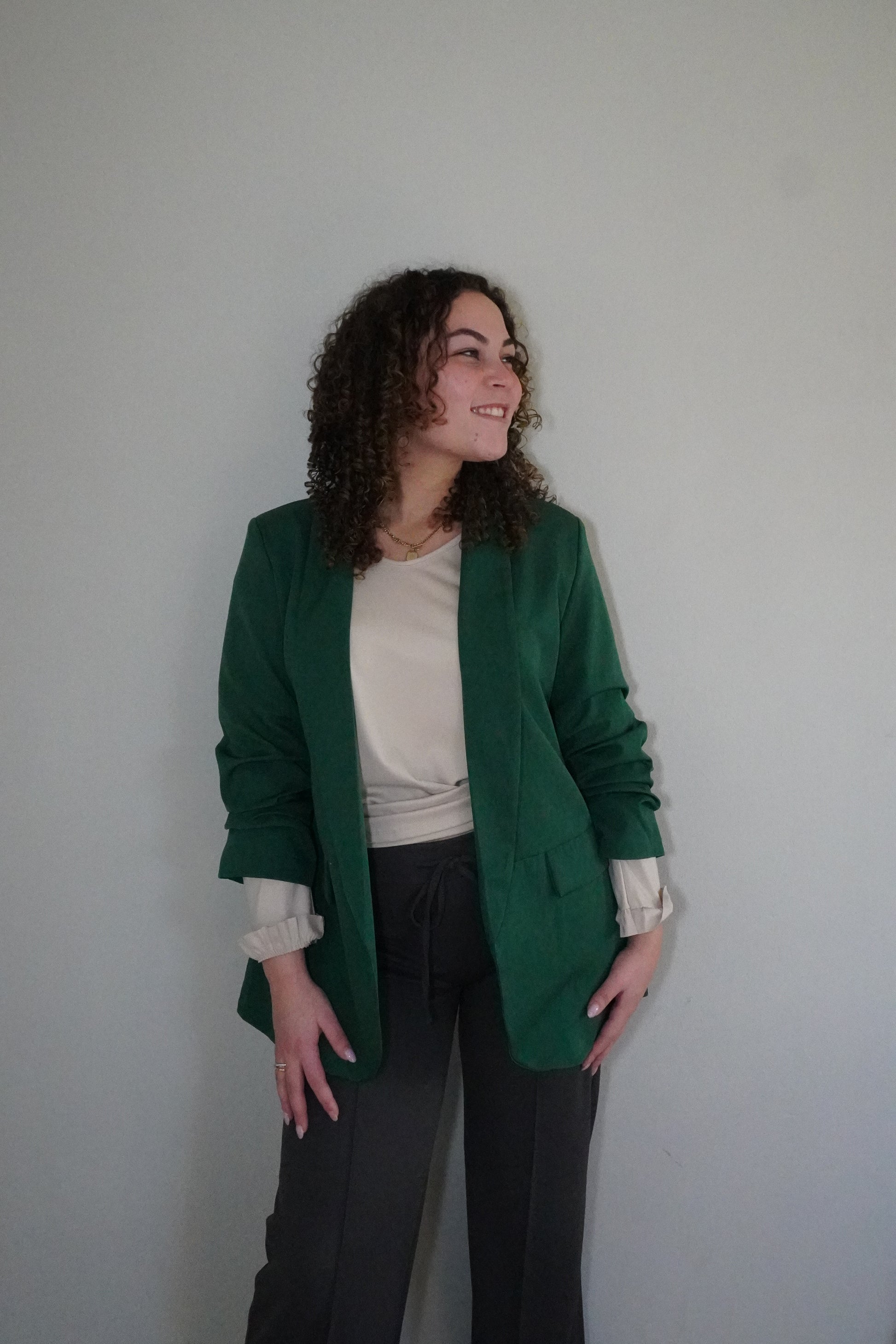 - Met de stof 100% polyester is het een stevige blazer met lang goed blijvende stof.