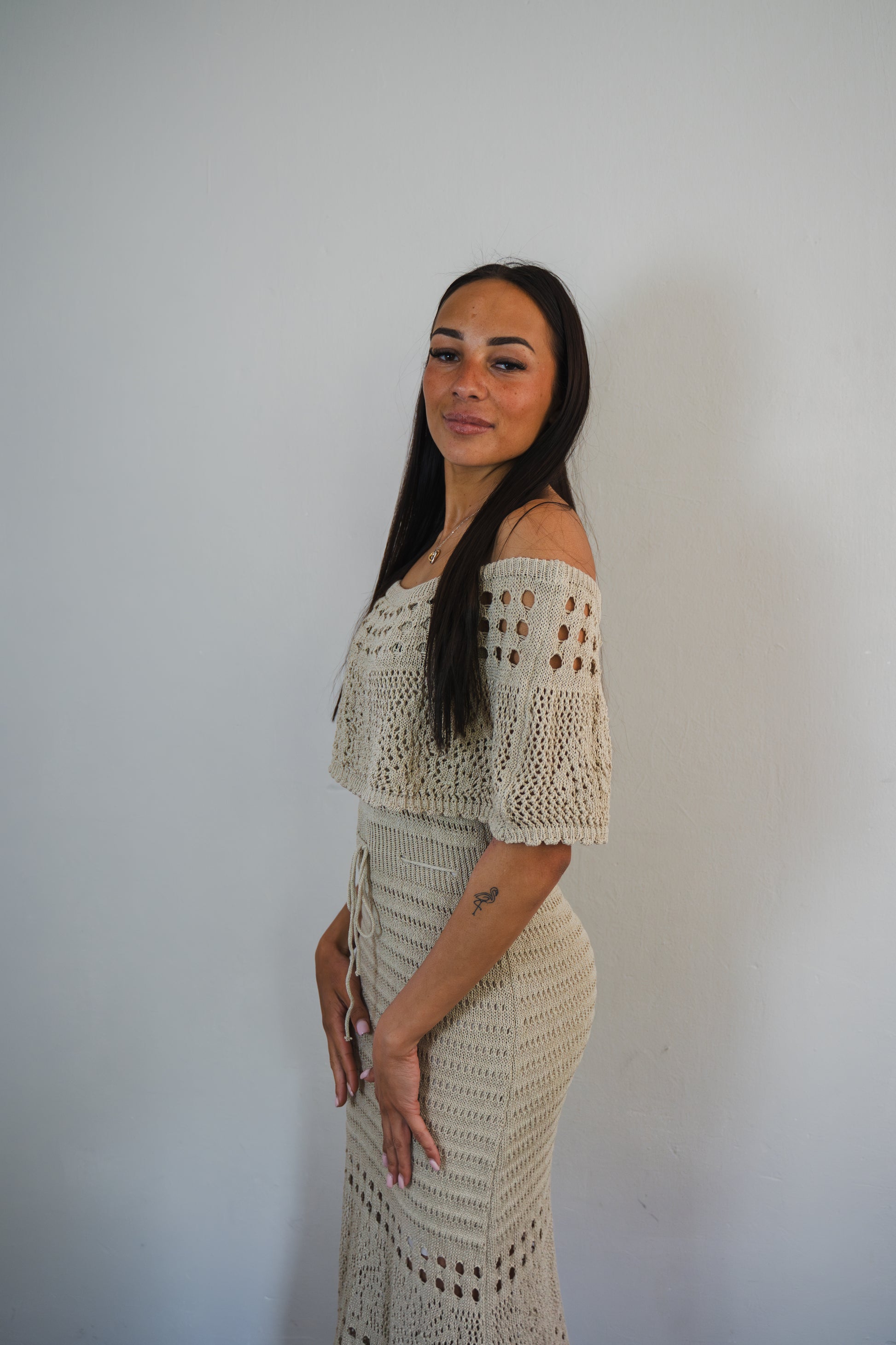 Chrochet beige dress