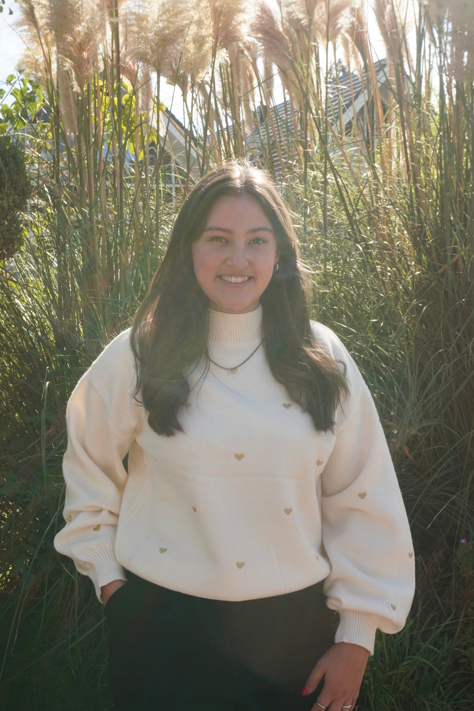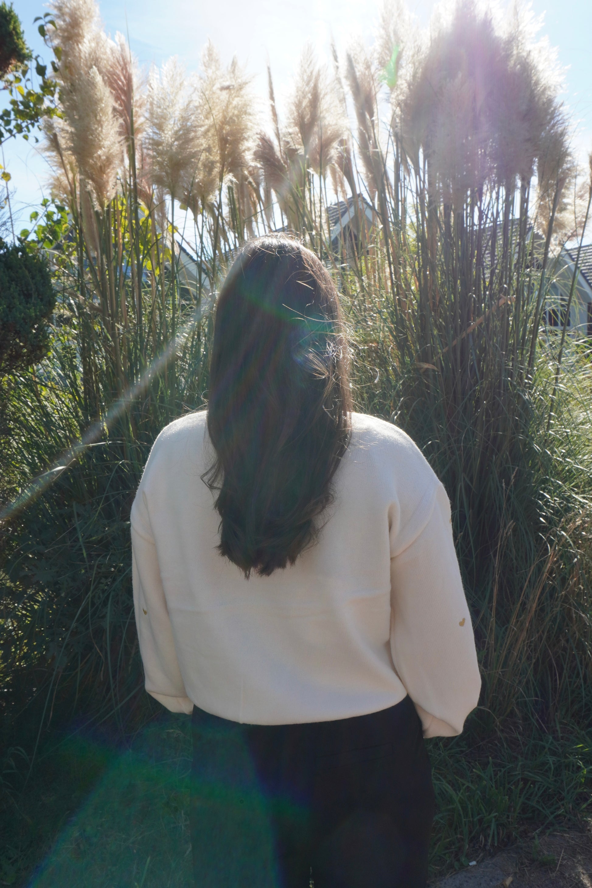 Wat is dit een eyecatcher waar je het zeker ook niet koud in krijgt! Deze te leuke sweater met ballon mouwen en een klein kolletje en gouden hartjes dat is wat jij wilt deze herfst/winter . Hij is heerlijk warm en je kan hem overal op matchen. Deze laat je toch niet liggen?