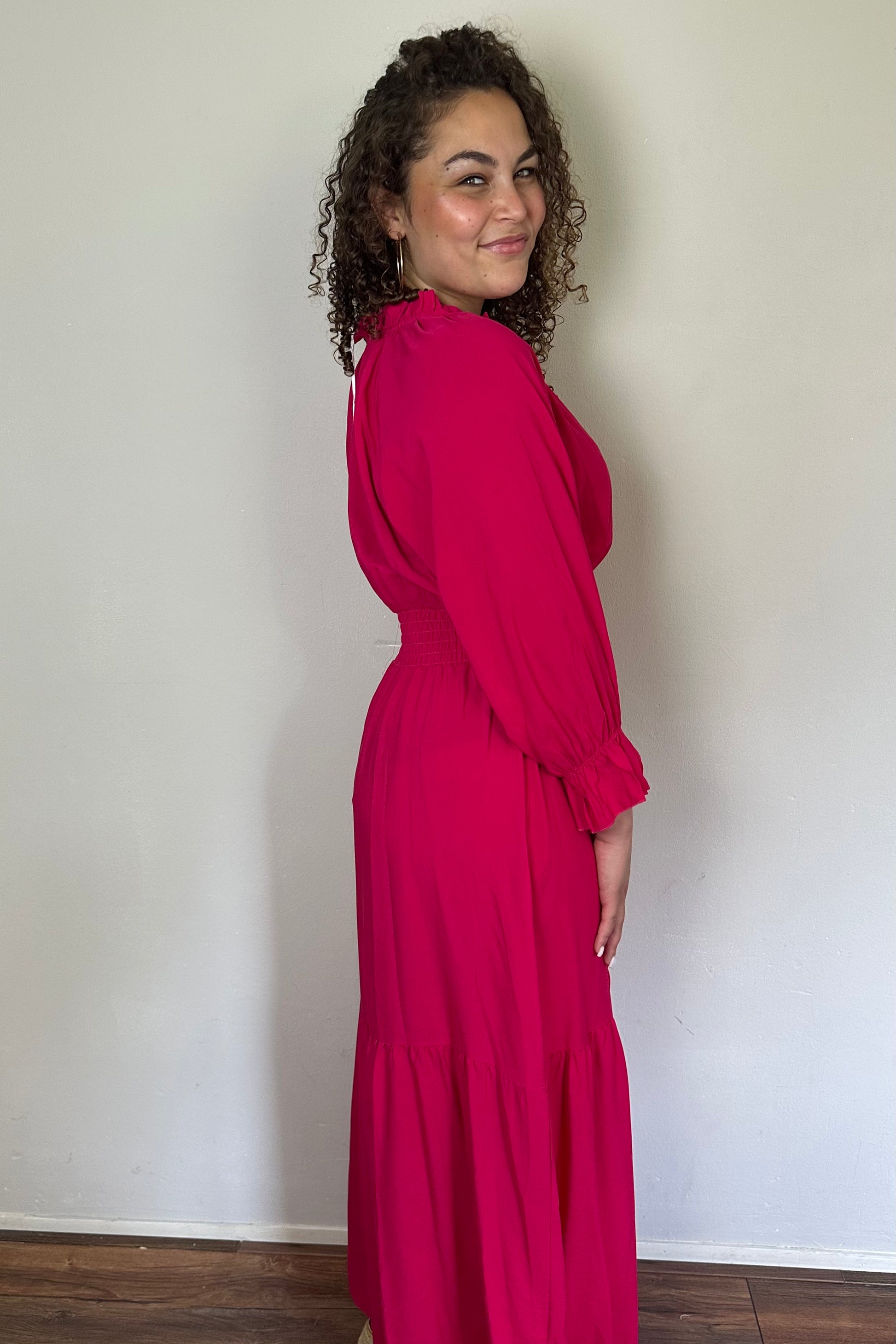 Ontdek de Fuchsia Dress – het stijlvolle zusje van onze populaire Animal Dress. Deze jurk is een echte eyecatcher dankzij de levendige fuchsia kleur en vrouwelijke pasvorm. Gemaakt van 100% viscose, voelt de stof heerlijk zacht, licht en ademend aan: perfect voor warme dagen of een avondje uit.
