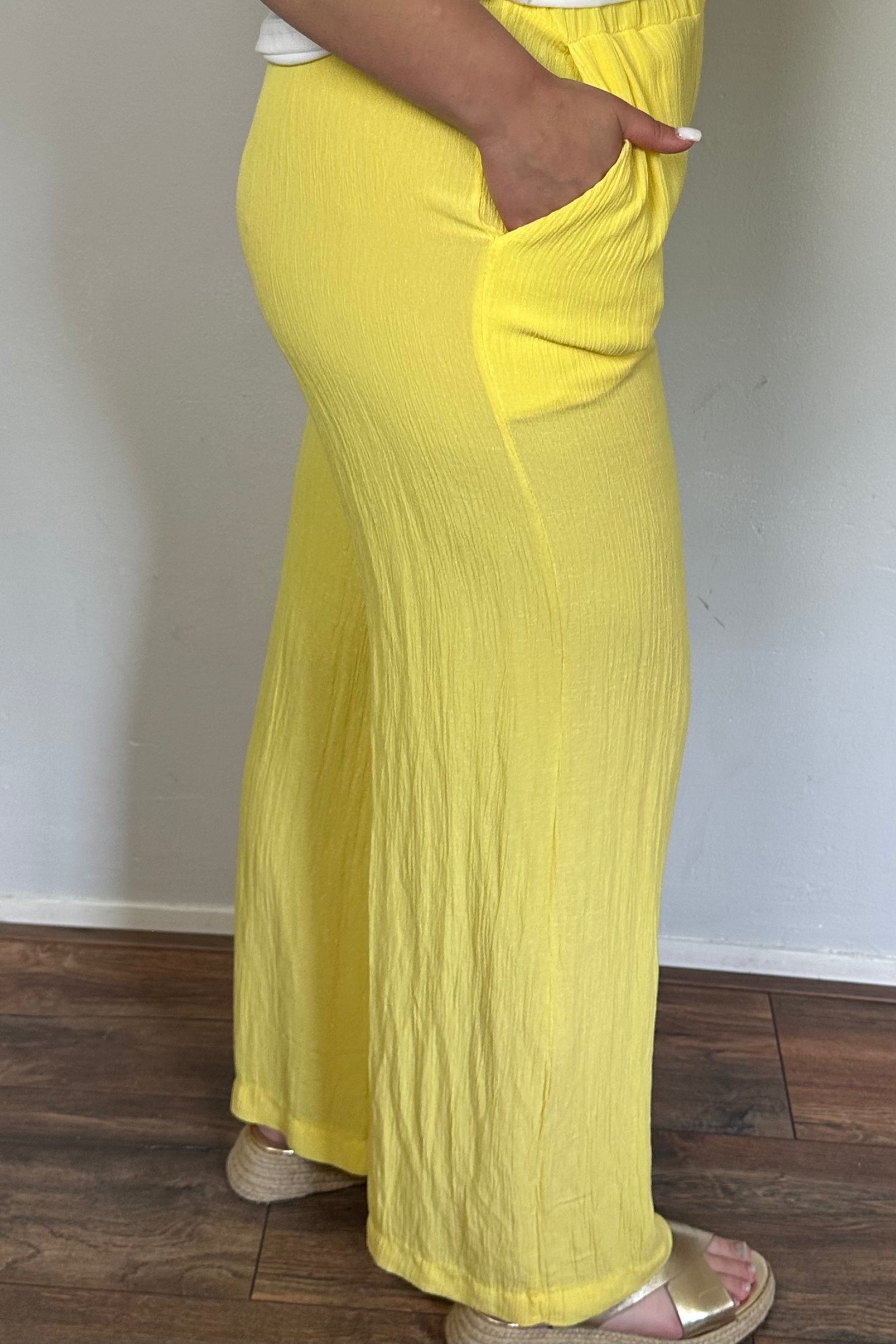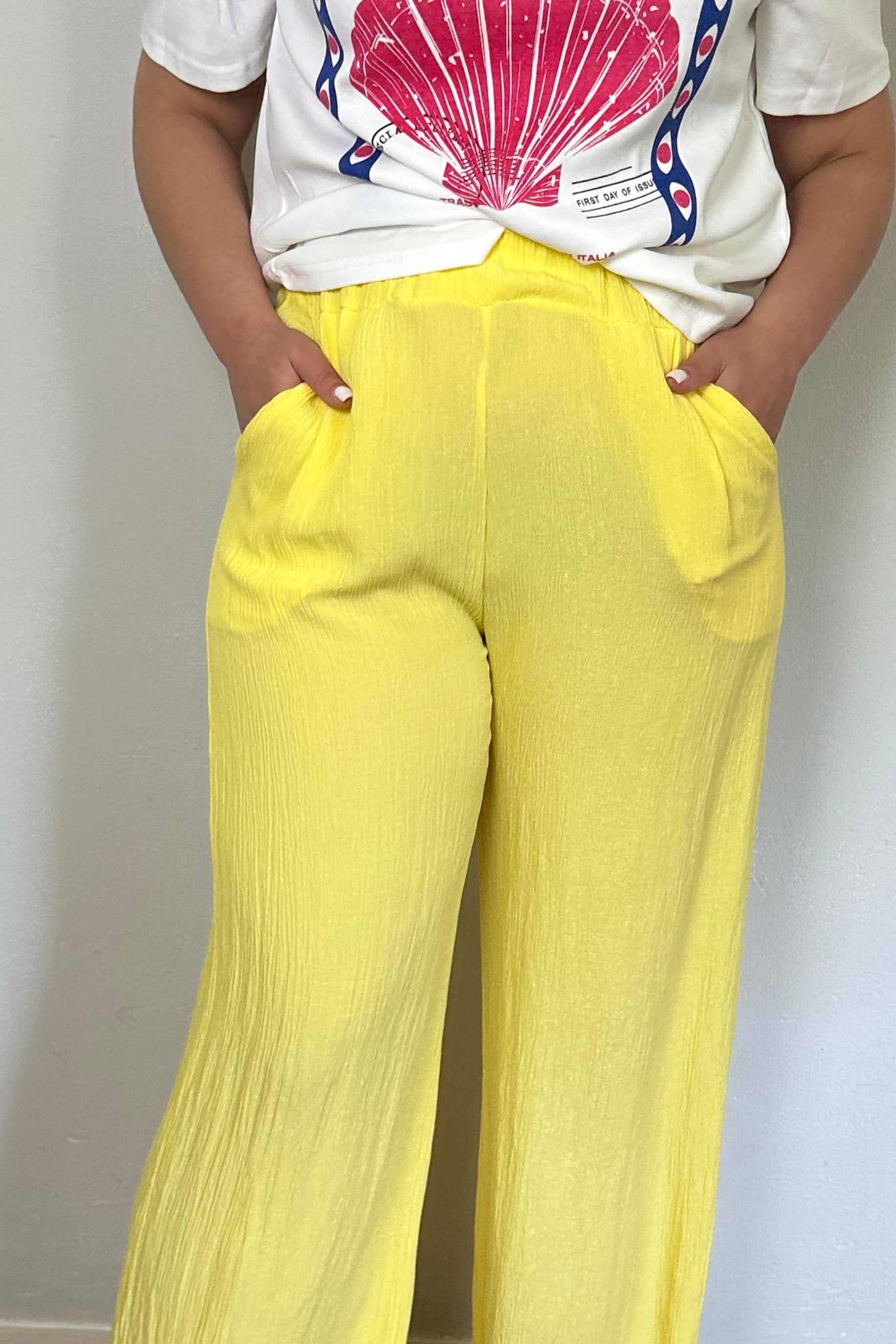 💛 Jady Bottom – Butter Yellow Elastische Broek (One Size 36/40, 100% Viscose)