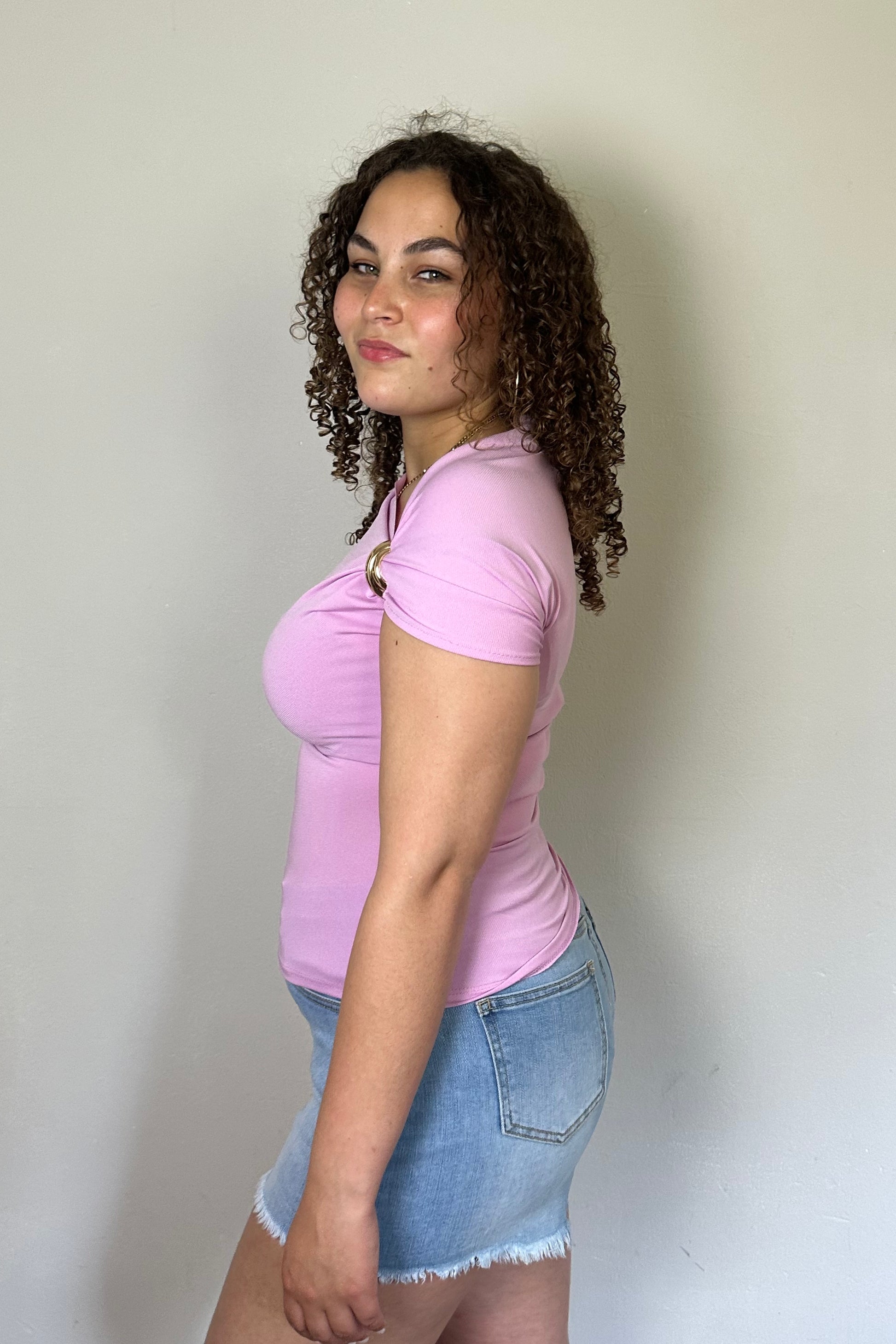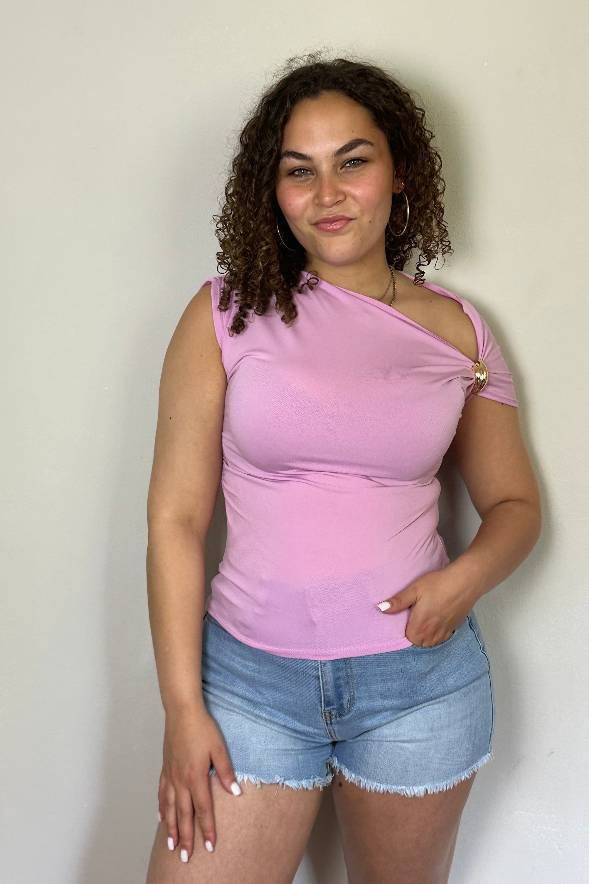 Voeg een vleugje luxe toe aan je garderobe met De Kimmie Top met goud detail op de linkerschouder. Deze verfijnde top combineert comfort met een elegante uitstraling, perfect voor zowel dagelijkse outfits als feestelijke gelegenheden.