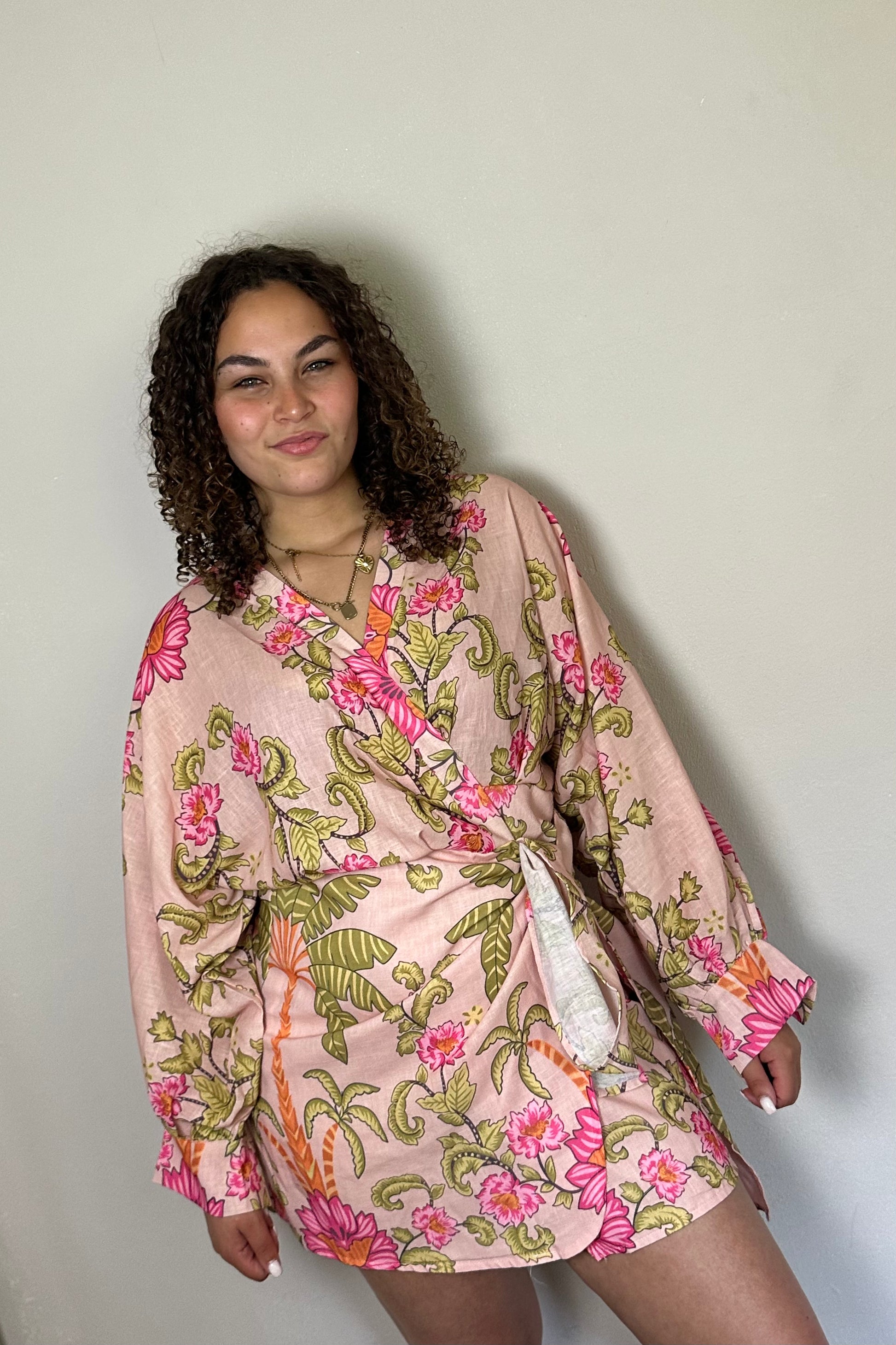 Mia Dress – Lichtroze Jurk met Bloemenprint en Strikdetail
