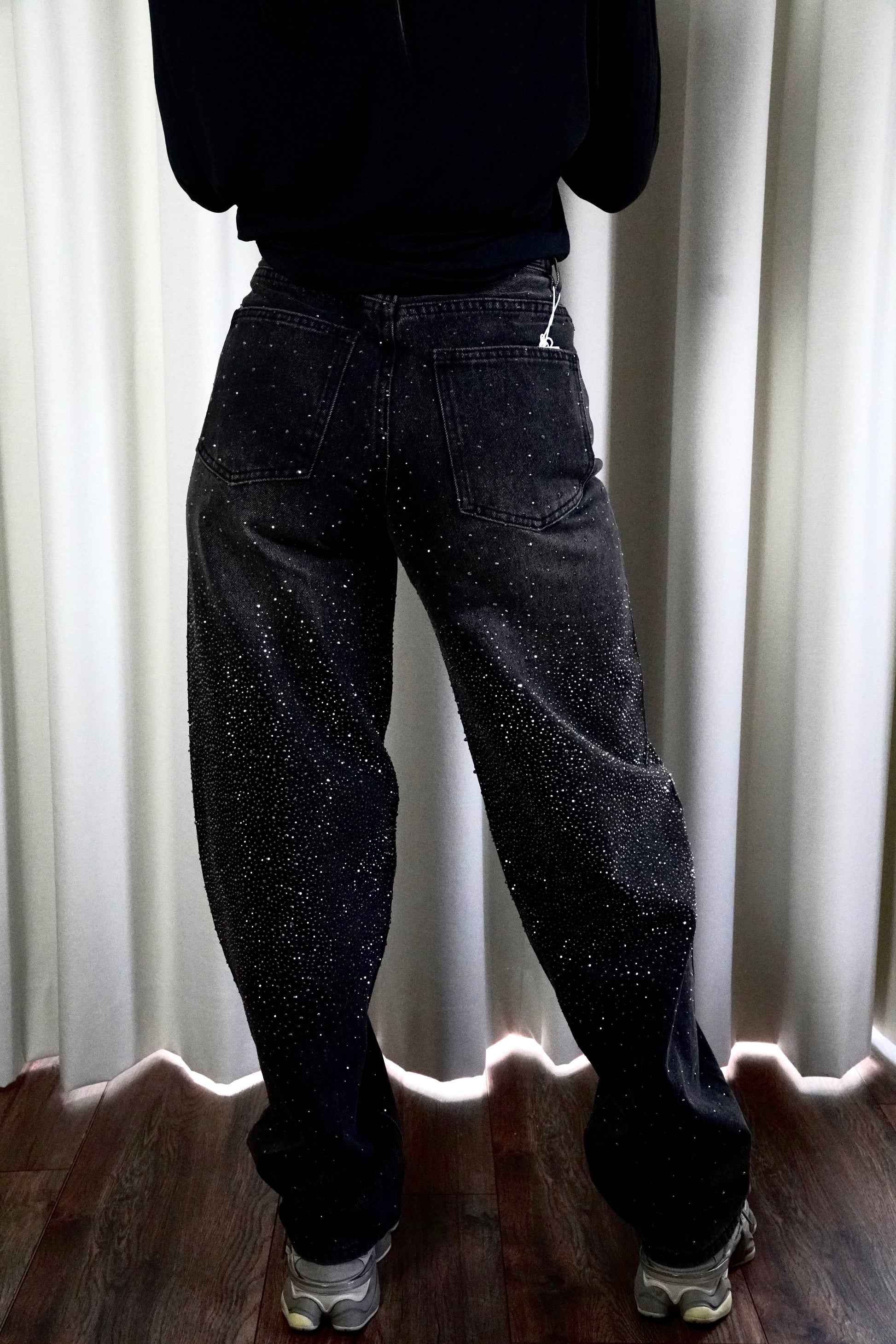 Ja dit is echt een eyecatcher hier word je toch helemaal vrolijk van als je van glitter houdt? Deze denim is een barrel maar daarom juist ook zo leuk! De glitter steentjes blijven over het algemeen goed zitten ook na het wassen (TIP: was de broeken binnenste buiten en doe ze niet in de droger!)