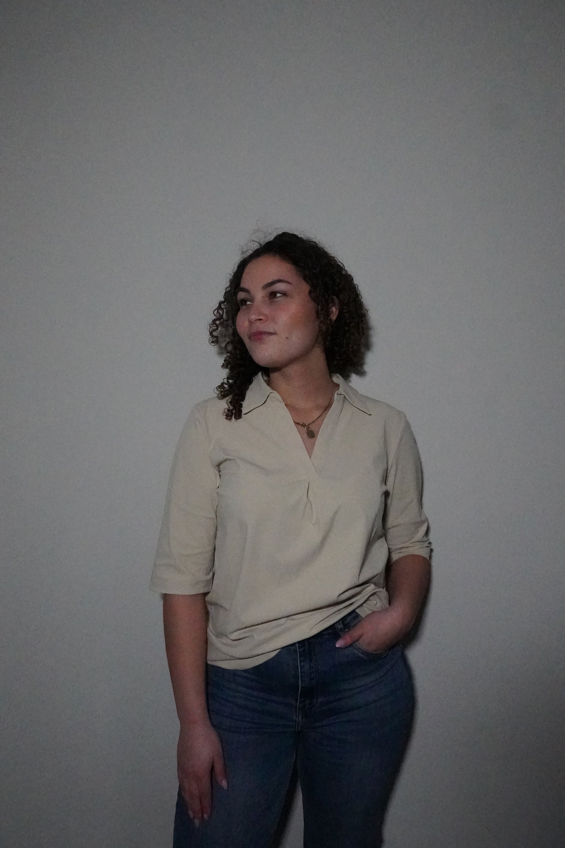 - Heeft en driekwart mauw en een V hals waardoor die elegant maar ook casual valt.